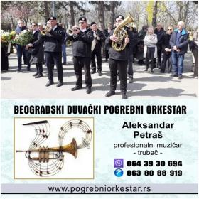 Orkestar za sahrane, duvački pogrebni orkestar, koji svira u svim gradovima Srbije, sastavljen od pet profesionalnih školovanih muzičara. Dugi niz godina krajnje profesionalno obavljamo ovu delatnost na sahranama, opelima, kremacijama, polaganjima urne, pomenima, ispraćajima. . . Nastupamo kao orkestar ali i pojedinačno, (truba, violina, crkveni hor. . . ) zavisno od želje klijenata. U repertoaru koji sviramo nalaze se pogrebni marševi, starogradske pesme, romanse, romske pesme, sevdalinke, klasična muzika. . . „Muzika i veselje dočekuju čoveka pri rođenju, pesma ga prati kroz život, a na kraju opet je tu - da ga poslednji put dostojanstveno isprati.“ Muzika je značajan deo života svih nas i zato ne čudi činjenica da sve veći broj ljudi izražava želju da njihov odlazak na večni počinak bude ispraćen baš uz zvuke neke melodije koja je na neki način njima bila bliska.