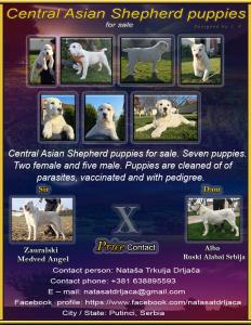 Srednjeazijski ovčar štenad na prodaju. Sedam štenadi. Dva ženska i pet muških. Štenad su očišćeni od parazita, vakcinisani I sa pedigreom. Otac: Zauralski Medved Angel