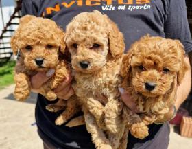 Toy pudle maleni mečići spremni za preuzimanje. Predivnih okruglih glavica, kratke njuske, malog rasta i sitne gradje. Oba roditelja u nasem vlasnistvu. Imamo bebe i u aprikot i u crvenoj boji. Od nas dobijate sve neophodno za dolazak vaseg novog clana u vas dom. Cinije za hranu i vodu, pelenice gde obavljaju nuzdu, hrana za prelazni period, omiljena igrackica malisana. Vase je da ih volite i ovaj oglas nije za nakupce. Samo za ozbiljne ljubitelje zivotinja i predivnih pudli. Moguca je i dostava uz dogovor.