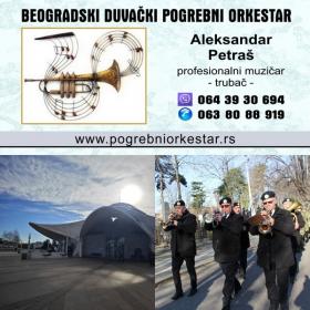 Vodeći se ovom mišlju, mi smo oformili naš duvački pogrebni orkestar koji možete pozvati da Vam pomogne u ispraćaju Vaše drage osobe. Naš orkestar, sastavljen je od profesionalnih školovanih muzičara koji dugi niz godina krajnje profesionalno obavljaju ovu delatnost na sahranama, opelima, kremacija, polaganjima urne, pomenima, ispraćajima… Nastupamo kao orkestar, ali i pojedinačno – truba, violina, crkveni hor – sve u zavisnosti od želje klijenata. U repertoaru koji sviramo nalaze se pogrebni marševi, starogradske pesme, romanse, romske pesme, sevdalinke, klasična muzika… Trudimo se svima da izađemo u susret onoliko koliko je u našoj moći,naravno da to bude sa ukusom uzimajući u obzir o kakvom događaju je reč.