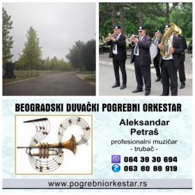 Vodeći se ovom mišlju, mi smo oformili naš duvački pogrebni orkestar koji možete pozvati da Vam pomogne u ispraćaju Vaše drage osobe. Naš orkestar, sastavljen je od profesionalnih školovanih muzičara koji dugi niz godina krajnje profesionalno obavljaju ovu delatnost na sahranama, opelima, kremacija, polaganjima urne, pomenima, ispraćajima… Nastupamo kao orkestar, ali i pojedinačno – truba, violina, crkveni hor – sve u zavisnosti od želje klijenata. U repertoaru koji sviramo nalaze se pogrebni marševi, starogradske pesme, romanse, romske pesme, sevdalinke, klasična muzika… Trudimo se svima da izađemo u susret onoliko koliko je u našoj moći,naravno da to bude sa ukusom uzimajući u obzir o kakvom događaju je reč.