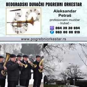 Vodeći se ovom mišlju, mi smo oformili naš duvački pogrebni orkestar koji možete pozvati da Vam pomogne u ispraćaju Vaše drage osobe. Naš orkestar, sastavljen je od profesionalnih školovanih muzičara koji dugi niz godina krajnje profesionalno obavljaju ovu delatnost na sahranama, opelima, kremacija, polaganjima urne, pomenima, ispraćajima… Nastupamo kao orkestar, ali i pojedinačno – truba, violina, crkveni hor – sve u zavisnosti od želje klijenata. U repertoaru koji sviramo nalaze se pogrebni marševi, starogradske pesme, romanse, romske pesme, sevdalinke, klasična muzika… Trudimo se svima da izađemo u susret onoliko koliko je u našoj moći,naravno da to bude sa ukusom uzimajući u obzir o kakvom događaju je reč.