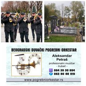Vodeći se ovom mišlju, mi smo oformili naš duvački pogrebni orkestar koji možete pozvati da Vam pomogne u ispraćaju Vaše drage osobe. Naš orkestar, sastavljen je od profesionalnih školovanih muzičara koji dugi niz godina krajnje profesionalno obavljaju ovu delatnost na sahranama, opelima, kremacija, polaganjima urne, pomenima, ispraćajima… Nastupamo kao orkestar, ali i pojedinačno – truba, violina, crkveni hor – sve u zavisnosti od želje klijenata. U repertoaru koji sviramo nalaze se pogrebni marševi, starogradske pesme, romanse, romske pesme, sevdalinke, klasična muzika… Trudimo se svima da izađemo u susret onoliko koliko je u našoj moći,naravno da to bude sa ukusom uzimajući u obzir o kakvom događaju je reč.