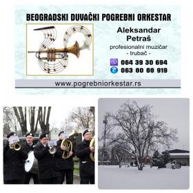 Vodeći se ovom mišlju, mi smo oformili naš duvački pogrebni orkestar koji možete pozvati da Vam pomogne u ispraćaju Vaše drage osobe. Naš orkestar, sastavljen je od profesionalnih školovanih muzičara koji dugi niz godina krajnje profesionalno obavljaju ovu delatnost na sahranama, opelima, kremacija, polaganjima urne, pomenima, ispraćajima… Nastupamo kao orkestar, ali i pojedinačno – truba, violina, crkveni hor – sve u zavisnosti od želje klijenata. U repertoaru koji sviramo nalaze se pogrebni marševi, starogradske pesme, romanse, romske pesme, sevdalinke, klasična muzika… Trudimo se svima da izađemo u susret onoliko koliko je u našoj moći,naravno da to bude sa ukusom uzimajući u obzir o kakvom događaju je reč.
